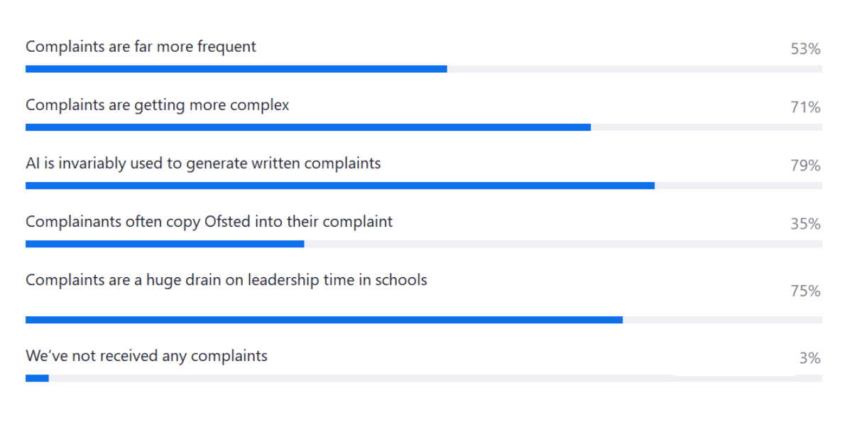 What has been your school’s experience of complaints in the past 12 months?